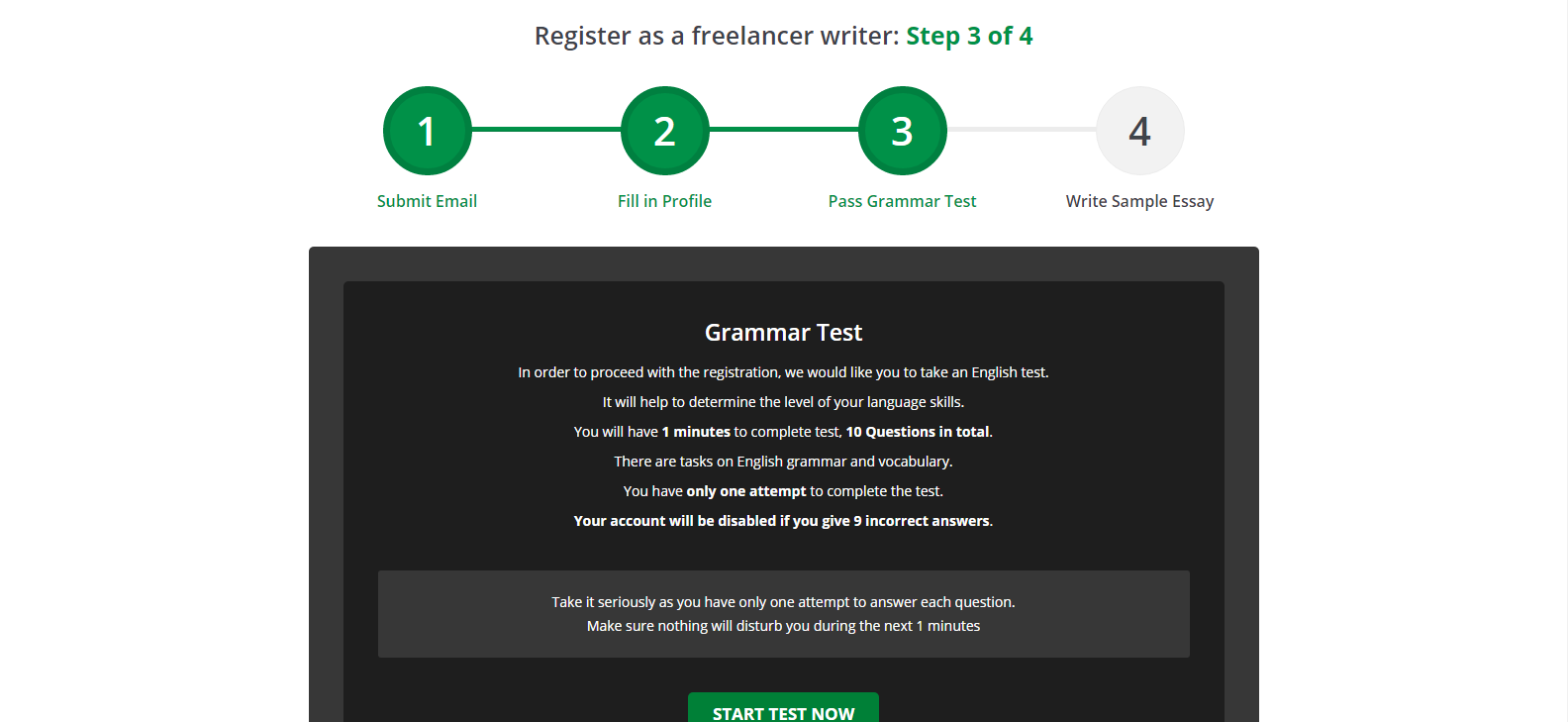 The second step is to take the grammar test, which will help us to evaluate your English grammar skills